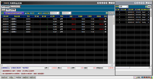 值得一提的是3/9號下午5:46:49的那一筆交易(10895買10913賣),帳面上看來是獲利的,